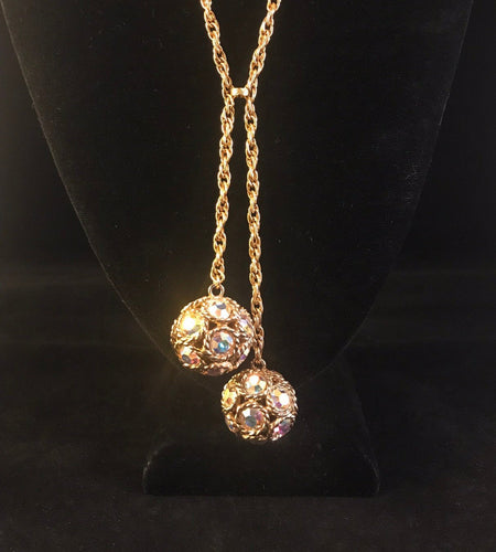 Vintage crystal and gold lariat necklace