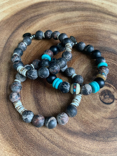 Teal waters ~ beaded bracelet set