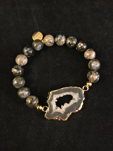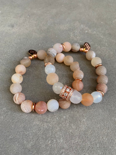 Smell the roses ~ rose gold, peach druzy agate and quartz beaded bracelet set