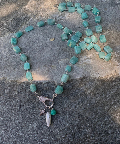 Soothing amazonite beaded bracelet set with micro pave crystal beads
