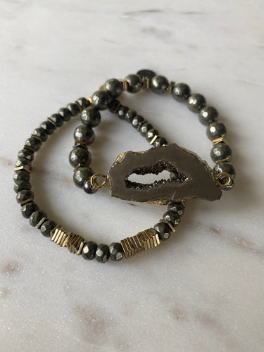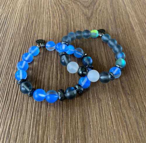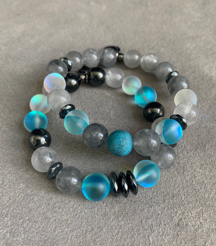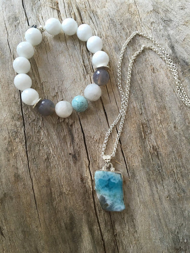 Practice Compassion~ hemimorphite, sea glass & white agate beaded bracelet set