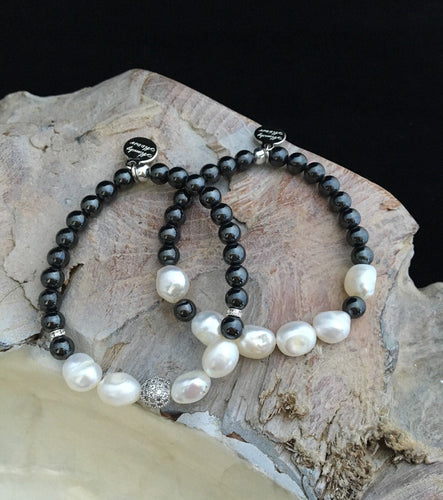 Pearl delight ~ Pearl, crystal and hematite beaded bracelet set