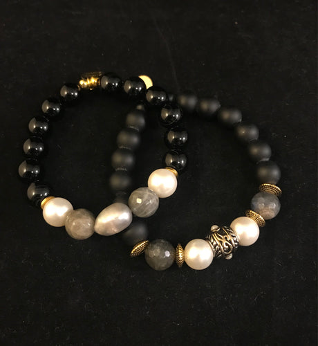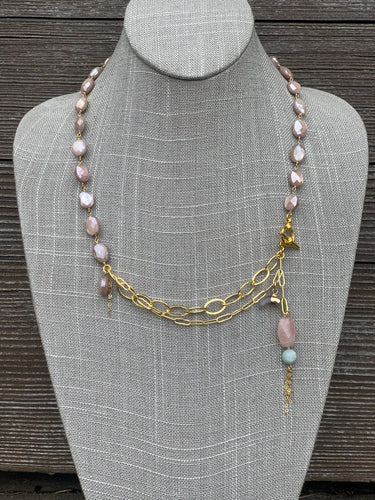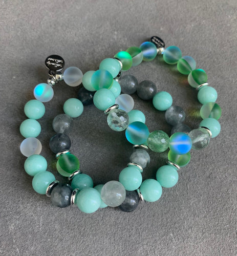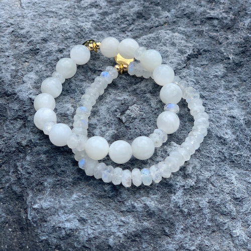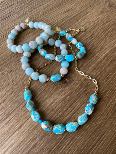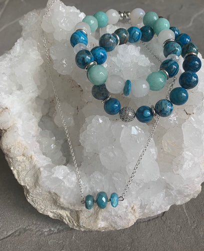 Mystical blue moonstone and crazy lace agate necklace and bracelet set